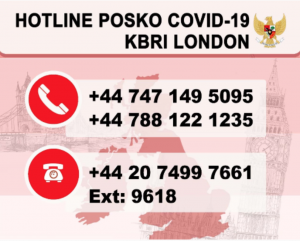 The Indonesian Embassy in London has set up the following numbers as hotline numbers for Covid-19 for Indonesian nationals living in the UK and Ireland: