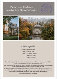 A major photographic event in aid of Saint Michael’s Hospice is to take in Harrogate. In order to support the hospice’s great work, three creative and inspired amateur photographers, Jean Knight, Sylvia Gardiner and Val Healey have teamed up with a professional photographer, Nita Strudwick and leading historian Malcolm Neesam for a photographic event showing Harrogate and its wonderful countryside … – Graham Chalmers
