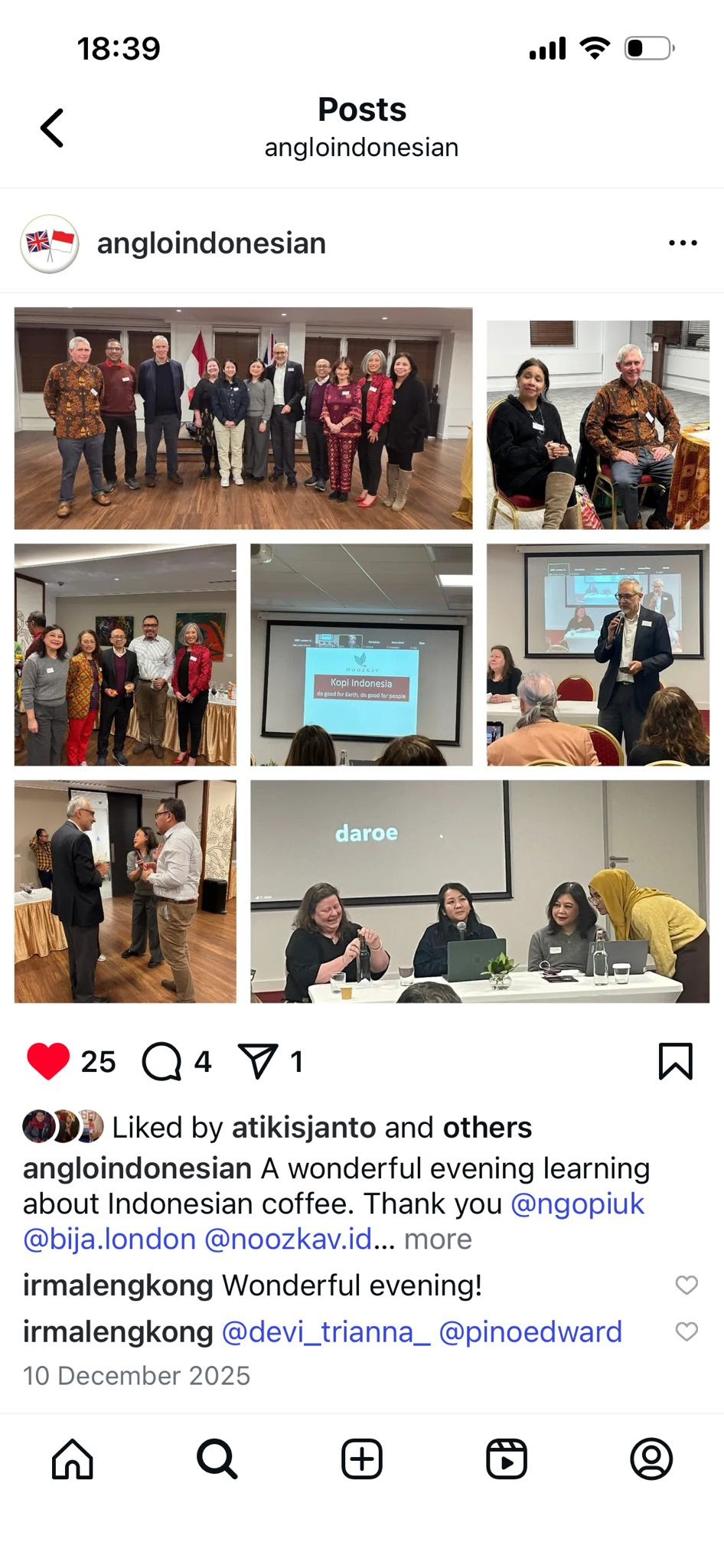 We are excited to announce that the society is now active on Instagram, thanks to the hard work of Sanya and Nadia, two students who are interning with the Council. Please start following @angloindonesian on the social media platform and spread the word to your friends and contacts.